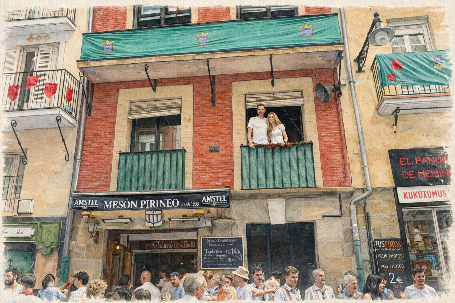 Desde nuestros balcones en la calle Estafeta vivirás San Fermín como muy pocos pueden hacerlo.